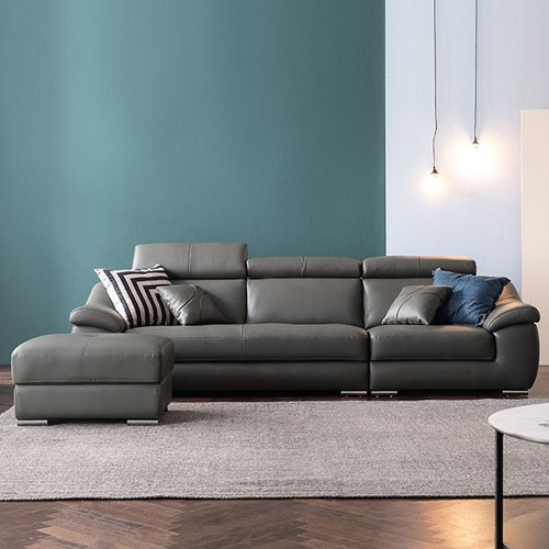 [삼익가구]한나 4인 천연소가죽 헤드틸팅 소파(스툴포함), 그레이