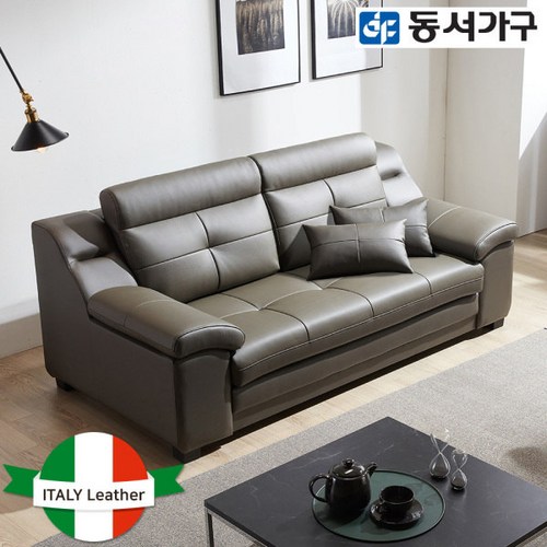 [동서가구] ★한정수량 이태리가죽 업그레이드★ 루엘 천연소가죽 구스포켓 라텍스탑 3인 소파, 색상:그레이
