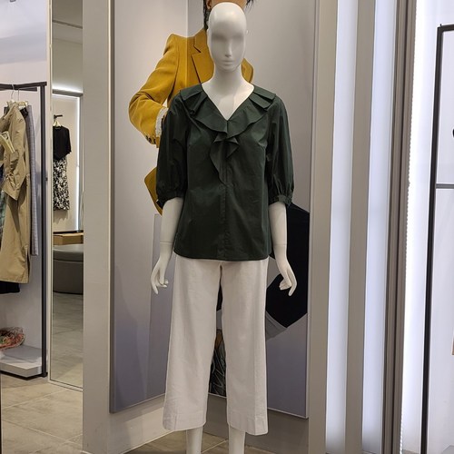 나이스클랍 V넥프릴 퍼프소매 블라우스 GN A202PWB402