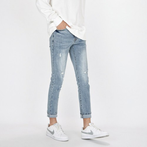 [데님공방] 남자 스판 연청바지 2종 스크레치 데미지 슬림핏 워싱 데님팬츠