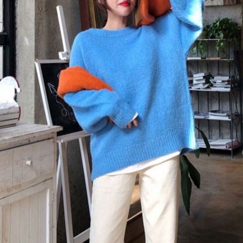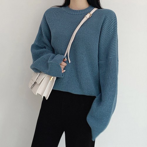 아모르데이 여성용 꼼티 루즈핏 옆트임 라운드넥 니트