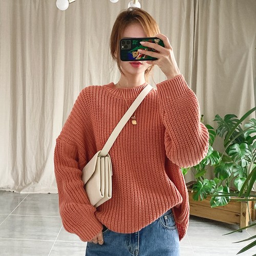 루나걸 여성용 플레인 라운드 니트