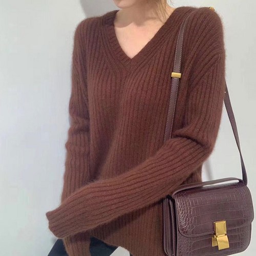 캐럿 여성용 브이넥 롱 스웨터
