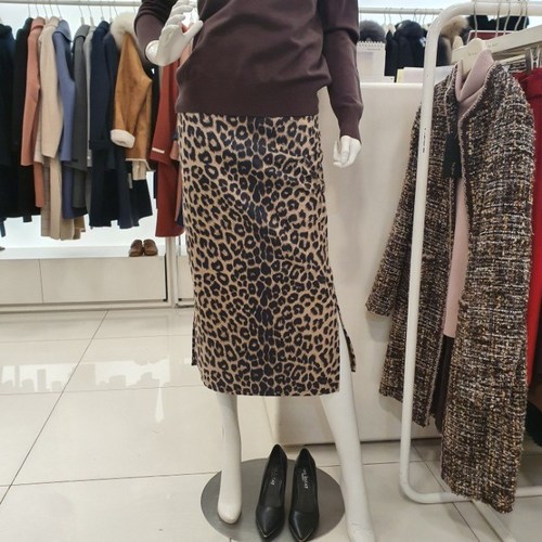 [더아이잗] 호피 밴딩 옆슬릿 H스커트