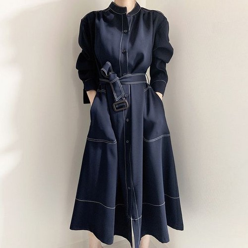 포린박스 벨트 데님 코튼 오피스 정장 트렌치 롱 원피스 YJ