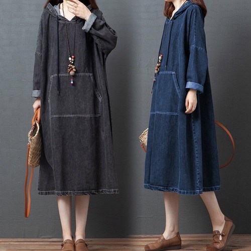 슈퍼셀 여성 후드 데님 원피스 가을 청원피스 빅사이즈 (SP311WD)