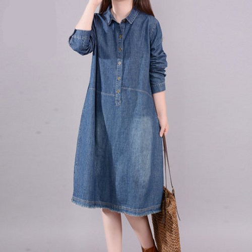 봄가을 여성 슬림핏 A라인 긴팔 데님 원피스 17