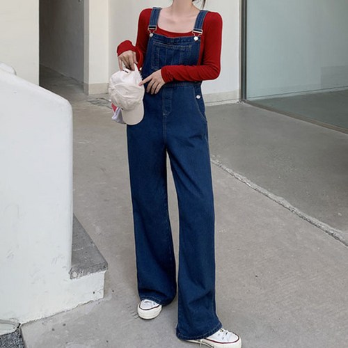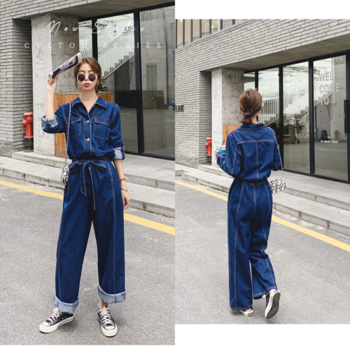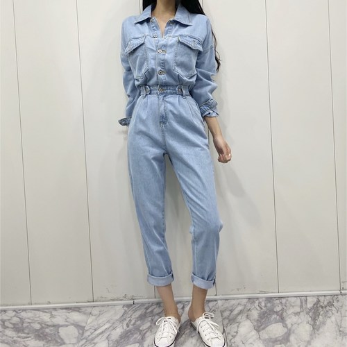 HY 후이 데님 트렌디 긴팔 루즈핏 점프수트