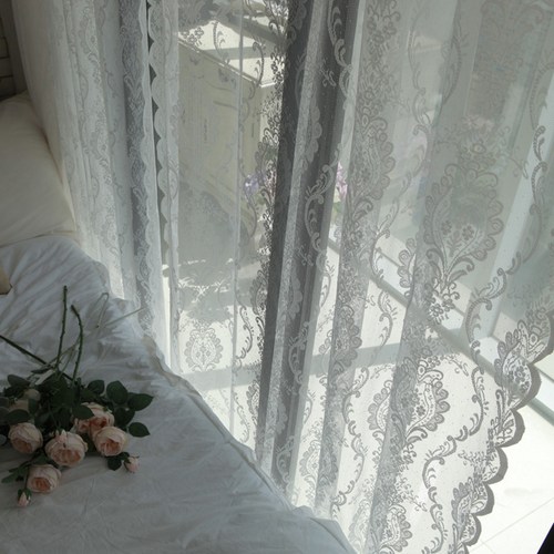 까르데코 디망쉬 레이스 커튼 2p, 화이트
