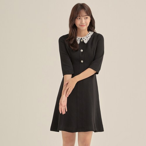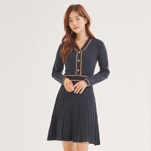 로엠 진주 버튼 배색 포인트 니트 원피스