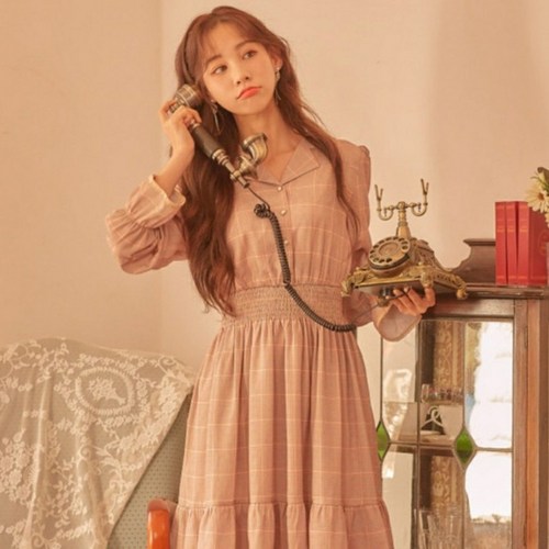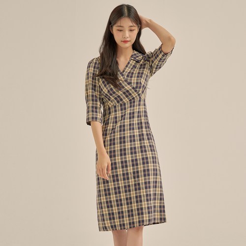 로엠 체크 패턴 카라 변형 원피스