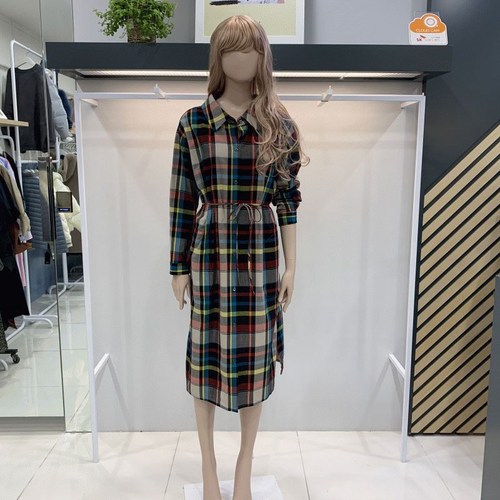 르샵 앞 리본 체크 트임 원피스 LK3OP203AA
