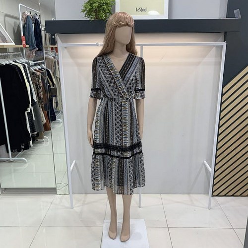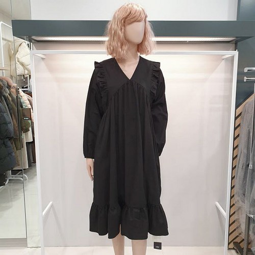[엔터식스]르샵 넥 테잎 앞단추 밑단 셔링 원피스 LK4OP580LK3OP580