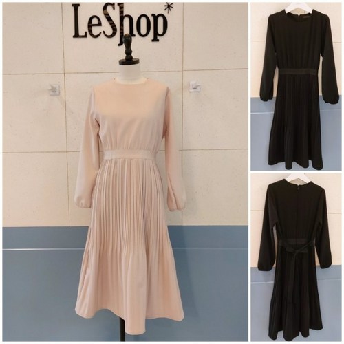 르샵 허리 리본 밑단 플리츠원피스 LK3OP457