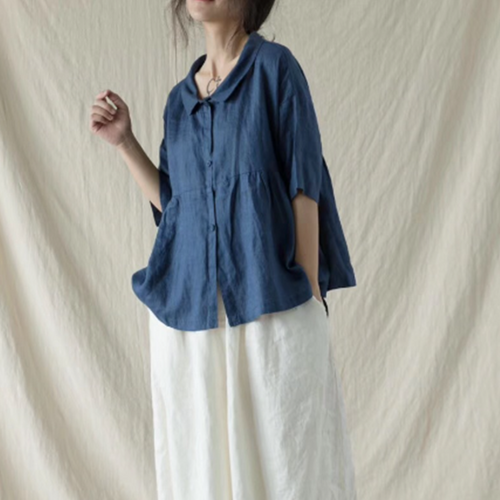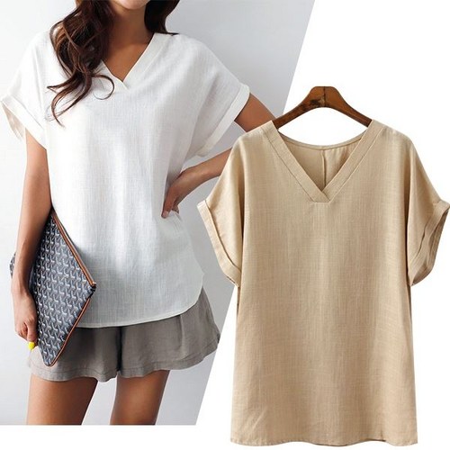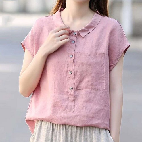 여성 마 셔츠 블라우스 반팔 린넨 CM06