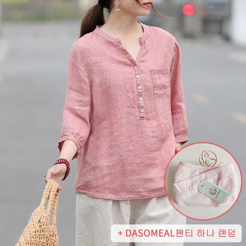 다소미얼 DASOMEAL 반소매 티셔츠 여성의류 칠부소매 티 라지 루즈핏 차이나 남방 리넨 상의 여년 여름 XZ12 A8