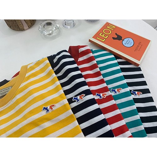 메종키츠네 삼색여우 단가라 긴팔 티셔츠 5컬러