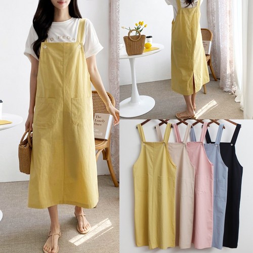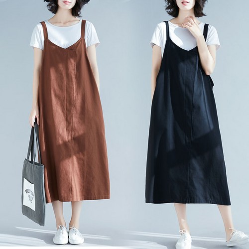 KD19 토프 루즈핏 멜빵 뷔스티에 면 린넨 봄 여름 롱 원피스