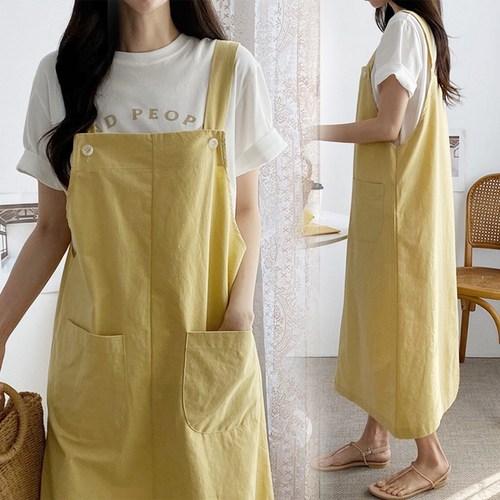 MOLY 여성 면마 A라인 빅사이즈 멜빵원피스 멜빵치마 J734