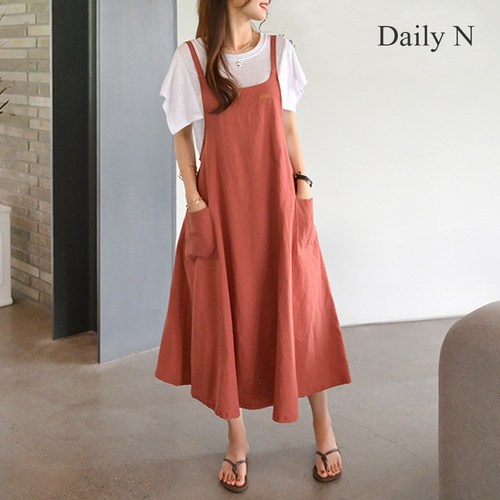 데일리앤 린넨 멜빵 플레어 롱원피스 로제트