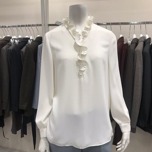 케이엘 KL 중앙로 넥 러플디자인 비춤이 덜한 크림블라우스
