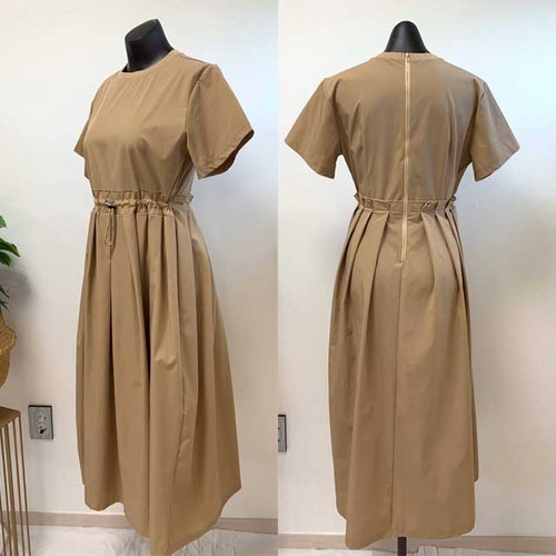 도도한나 고급 세련 바스락 여름 반팔 코튼 프라다원단 허리스트링 주름 플레어 정장 롱원피스