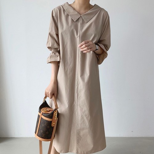 [라멜라] 스모크 벌룬 바스락 카라 원피스