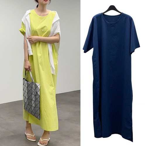 핑크닷 971 바스락원피스. 맥시 롱롱원피스. 트임 H라인. 상큼컬러