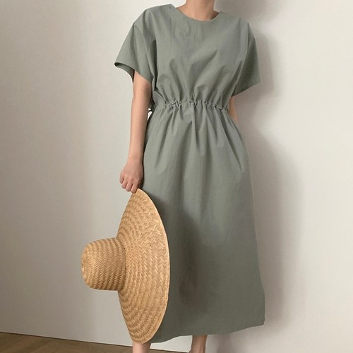 도도한나 고급 세련 바스락 여름 반팔 코튼 프라다원단 허리스트링 주름 플레어 정장 롱원피스