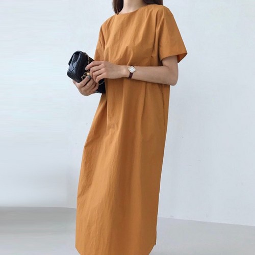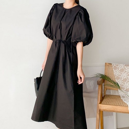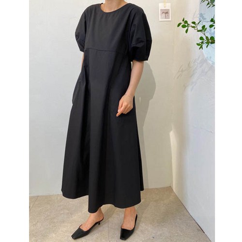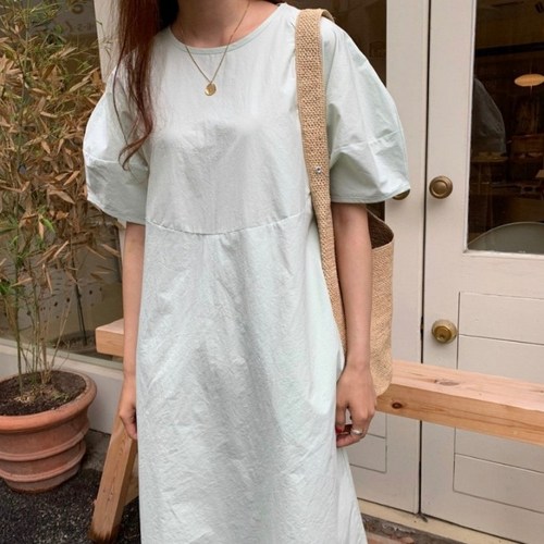 원스컴퍼니 펌킨 민트 여름 루즈핏 벌룬 퍼프 볼륨 소매 코튼 반팔 롱 원피스(3color)