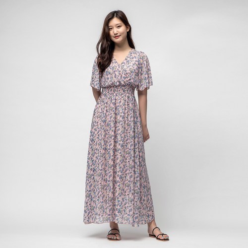 여름 비치원피스 롱 에스닉 맥시 반팔 루즈핏 셔링 브이넥 데일리 바캉스 휴양지룩 빅사이즈 비치웨어 HC417