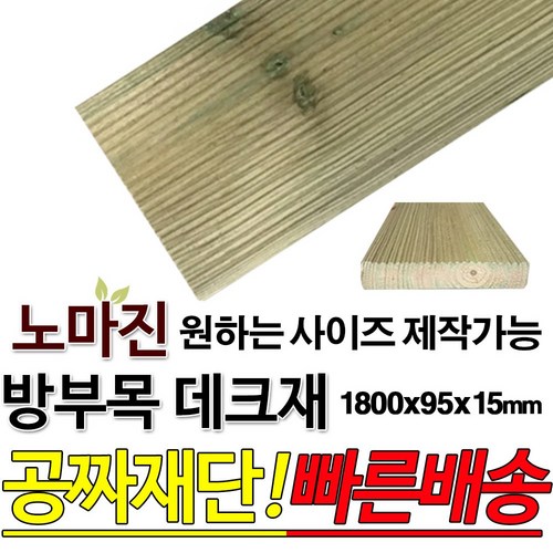 DIY 맞춤목재 공짜재단 방부목 데크재 1800x95x15mm 노마진[50개이상구매할인상품] 야외데크 맞춤재단 무료재단 옥상바닥 테라스 전원주택 데크설치 시공가격 천연원목 목재 재단 집성목 합