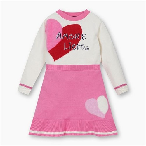 베네통 키즈 하트 모티브 패치 니트 원피스 QAOP17961IV