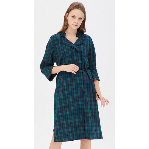 베네통 긴팔 간절기 오버핏 사방스판 아주 편한 허리벨트 체크원피스 baop08941 덕천뉴코아