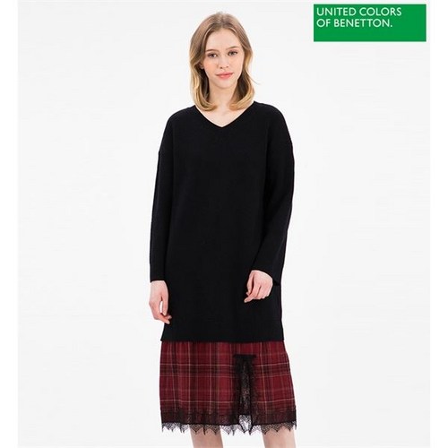 베네통 체크 스커트 레이어드 원피스 BAKO55861 BK