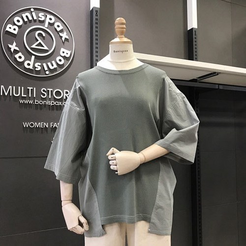 [보니스팍스] *유니크 감성 컬렉션* 밑단 트임 소매 셔링 #루즈핏 #라운드 티셔츠