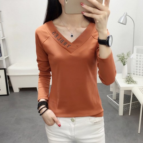 보브 기모 여성 긴팔 데콜테 레터링 티셔츠