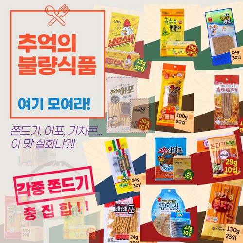 <40종 골라담기> 추억의 옛날 문방구 불량식품 과자 저녁 간식 군것질 주전부리 옥수수 호박 꿀 설탕 쫀드기 쫀디기 대용량, 42_1QH2_빼빼어포오리진30입