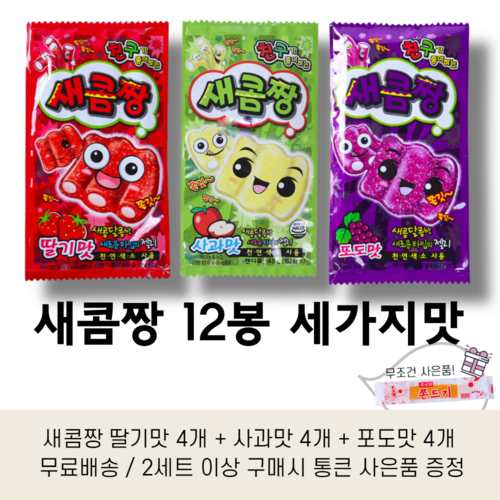 까까매점 새콤짱 12개 딸기맛 + 사과맛 + 포도맛 / 추억의 불량식품 / 추억의 쫀드기 증정, 딸기맛 + 포도맛 + 사과맛 12개