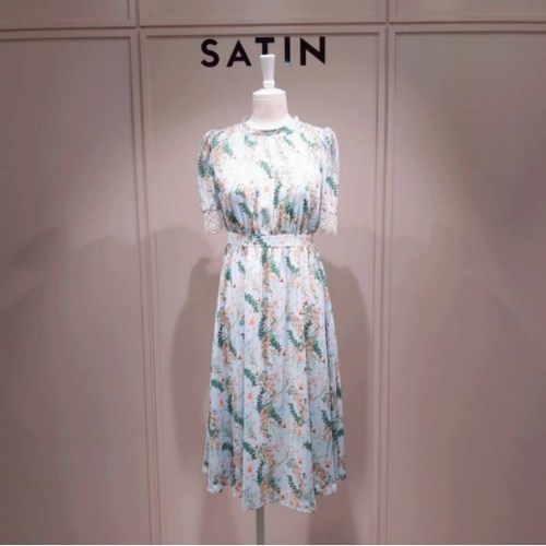 샤틴 나뭇잎패턴 원피스 S202M678 03