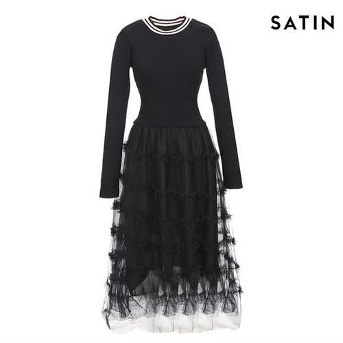샤틴 니트배색 샤스커트 원피스 O203T976 11