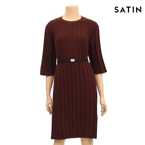 샤틴 벨티드 플리츠 원피스 O193T904-54
