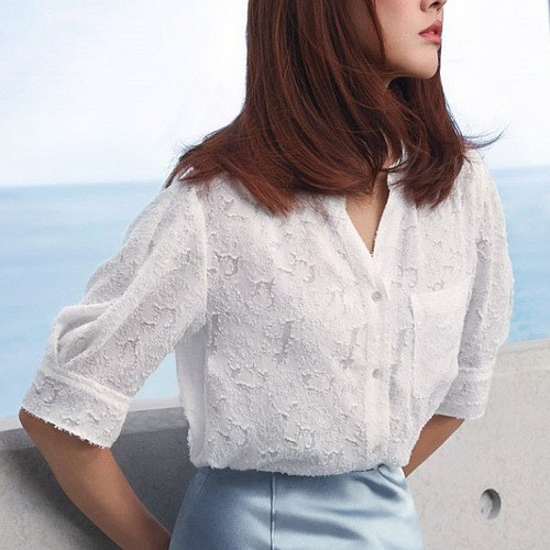 [쉬즈미스] 롯데몰 원포켓 브이넥 버튼 다운 반팔 셔츠 SWWSTK21420_EP