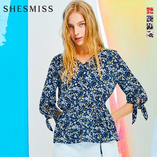쉬즈미스 쉬즈미스 19 여름신상 플라워 프린트 벨티드 블라우스_SWWBLJ21200