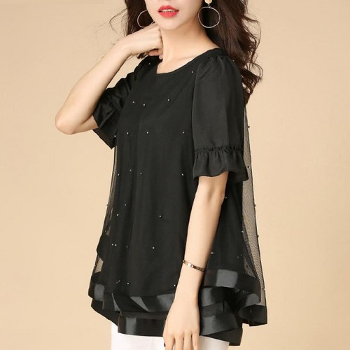 kirahosi 블라우스 반팔 시폰 여성 엄머옷 40대 50대 빅사이즈 554호 AGpr3np