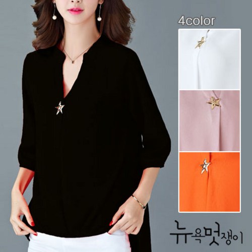 뉴욕멋쟁이 골든별 언발 쉬폰 롱블라우스 쉬폰블라우스 여성 블라우스 카라 빅사이즈여성