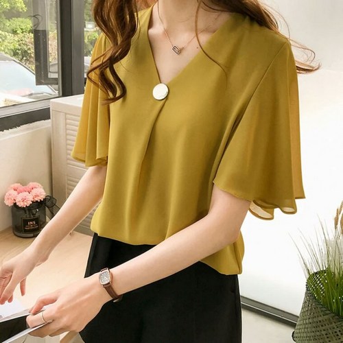 여성쉬폰블라우스 블라우스셔츠 정장셔츠 캐주얼블라우스 반팔블라우스 오피스룩 루즈핏빅사이즈Q10