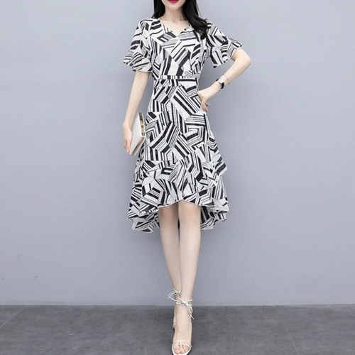 올파인 트라미 쉬폰 롱 원피스 반팔원피스 랩원피스