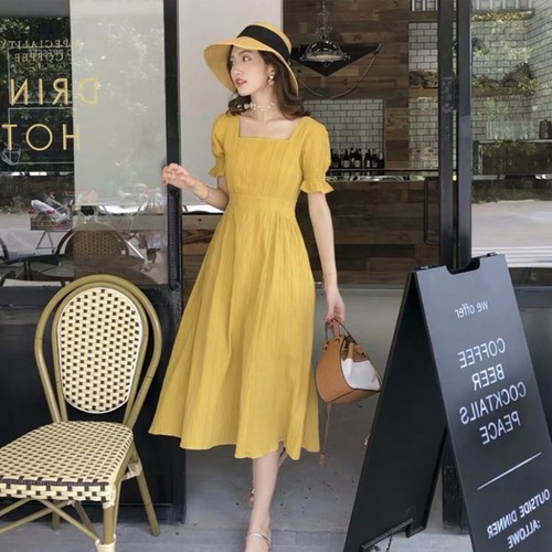 러블리트 KR7XZULZ 여성 여름 반팔 퍼프 스퀘어넥 미디 원피스