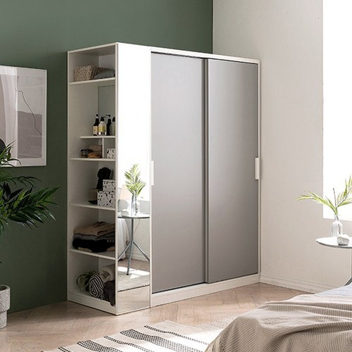 [삼익가구]디레브 슬라이딩 옷장 A세트(행거형+선반형), 화이트